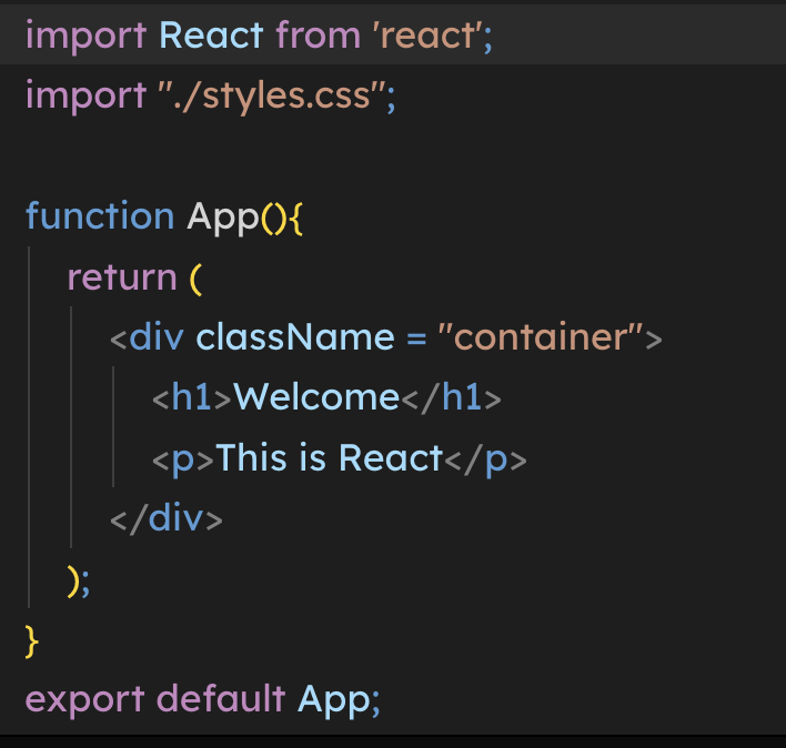 일반적으로 전체 앱의 구조를 잡아주는 역할을 한다. 여러 개의 컴포넌트를 불러와서 조합하는 장소.