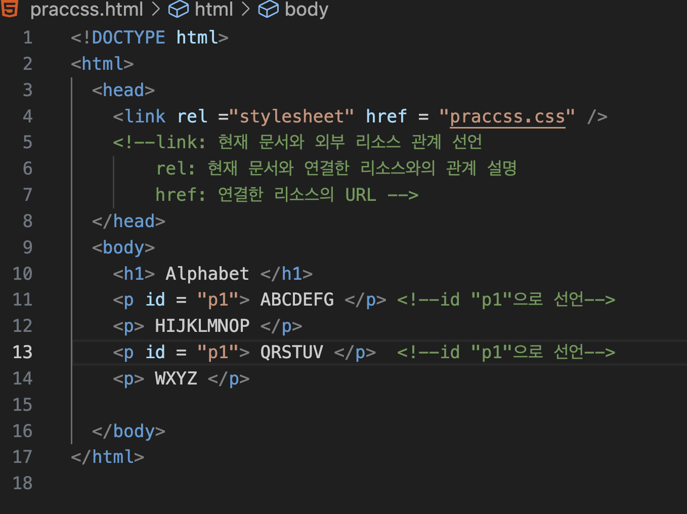 아이디 지정 방법 (HTML):