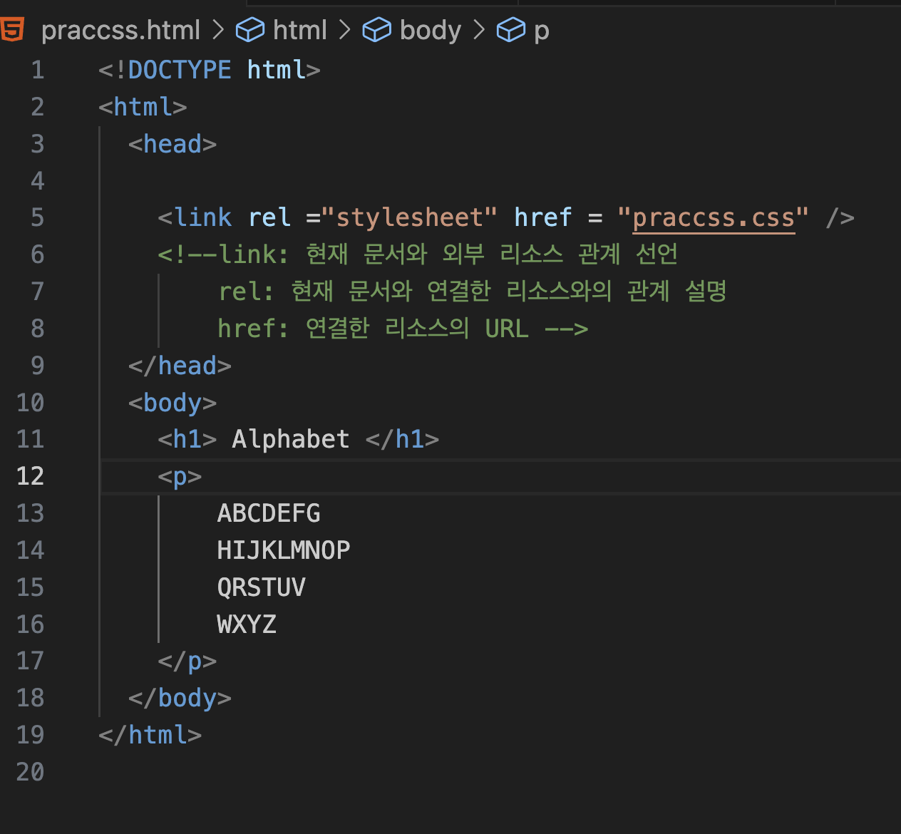 나. 파일을 두 가지로 나눠서 외부 CSS 파일 불러오는 방법( 꾸며야할 코드가 길수록 나. 방법을 쓰는 것이 더 효율적임)