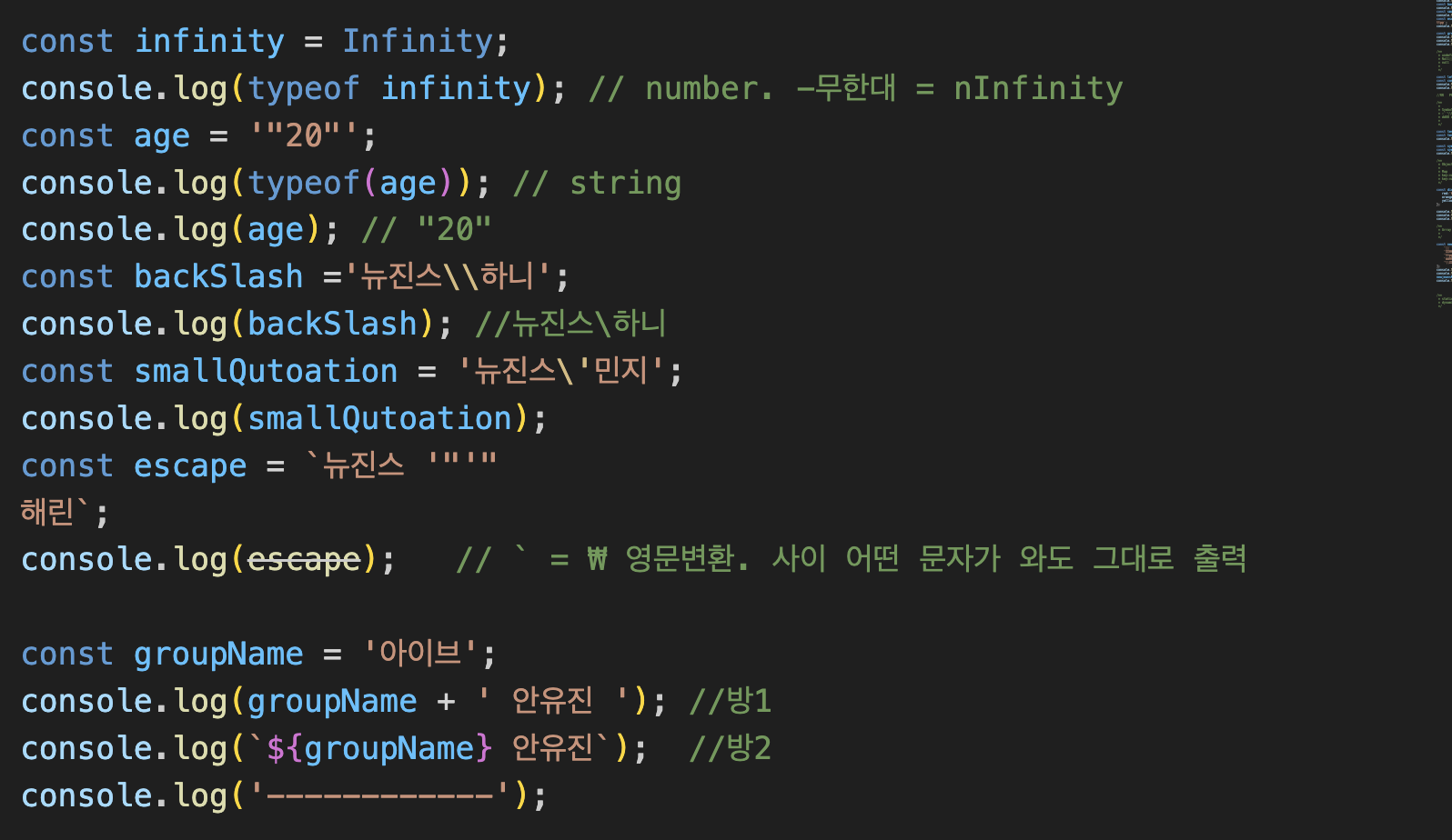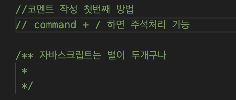 첫 번째는 // 쓰고 싶은 말 <- 다른 프로그래밍 언어에서도 이 표현을 자주 썼다