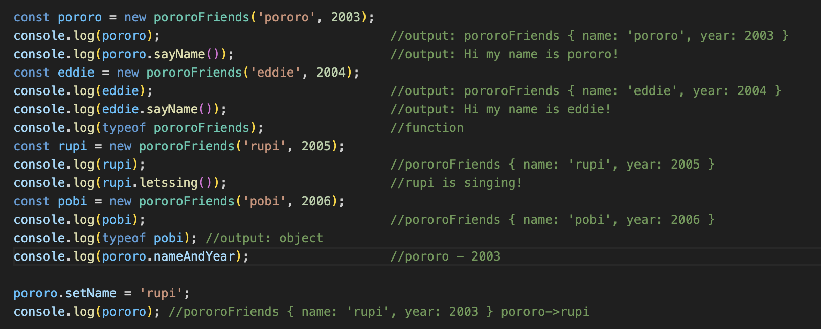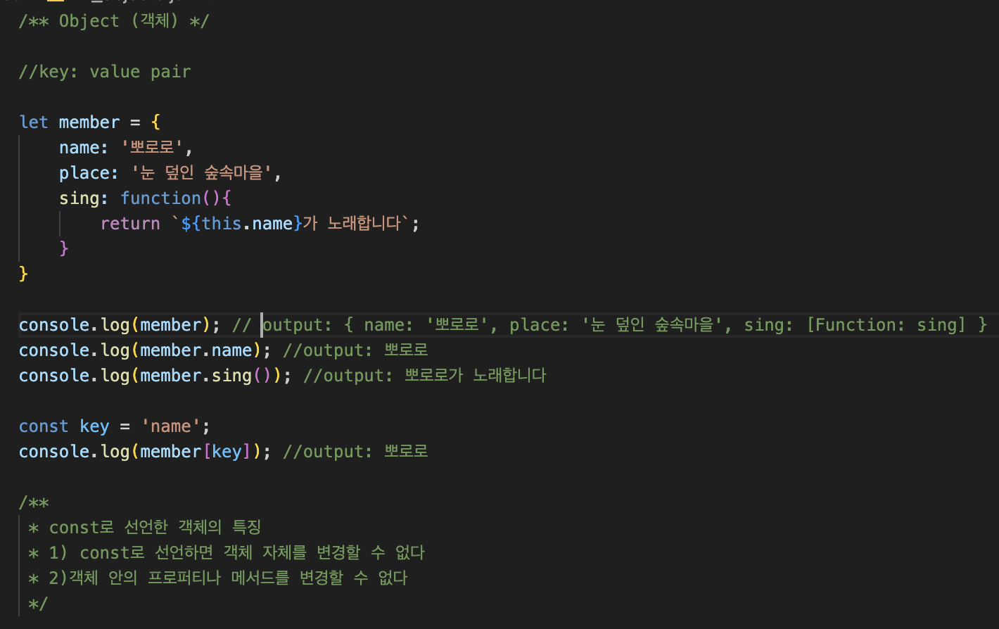 아래는 객체를 만들고 이를 사용한 예시이다.